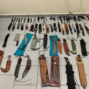 μαχαίρια, μηχανισμοί εκρηκτικών, φυσίγγια, αλεξίσφαιρα γιλέκα κ.α.