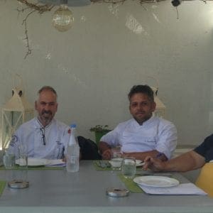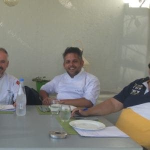 Τα πιάτα των νέων σεφ, έκριναν ο Νίκος Χριστοφόρου πρόεδρος της Λέσχης Αρχιμαγείρων Δωδεκανήσου- Κυκλάδων, ο Βασίλης Ζαχαράκης και Κώστας Αγγελόπουλος, μέλη της Λέσχης Αρχιμαγείρων Δωδεκανήσου- Κυκλάδων και executive chefs σε μεγάλα ξενοδοχεία της Σαντορίνης.