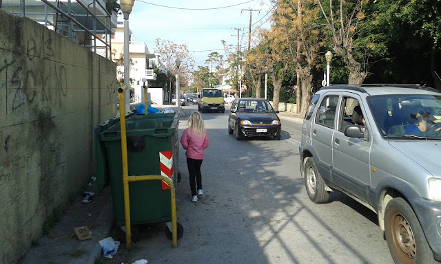 Το παιδί, αγαπητοί ανευθυνουπεύθυνοι, είναι μικρό και δεν μπορεί να δει πάνω, αριστερά ή δεξιά από τους κάδους, με αποτέλεσμα να βγαίνει στο δρόμο στα τυφλά! Έλεος…κοινή λογική χρειάζεται!