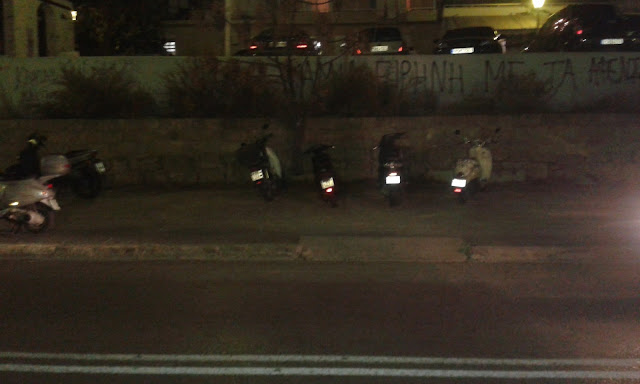 Όπως όλοι γνωρίζουμε, κατά την διάρκεια όλου του 24ωρου υπάρχουν μηχανάκια σταθμευμένα στην άκρη του δρόμου ΚΑΙ ΑΥΤΟΚΙΝΗΤΑ ΠΑΝΩ ΣΤΑ ΠΕΖΟΔΡΟΜΙΑ, κλείνοντας την ορατότητα από τους οδηγούς των οχημάτων και δυσκολεύοντας τους πεζούς να κινηθούν πάνω στα πεζοδρόμια και να περάσουν από την απέναντι πλευρά του δρόμου.