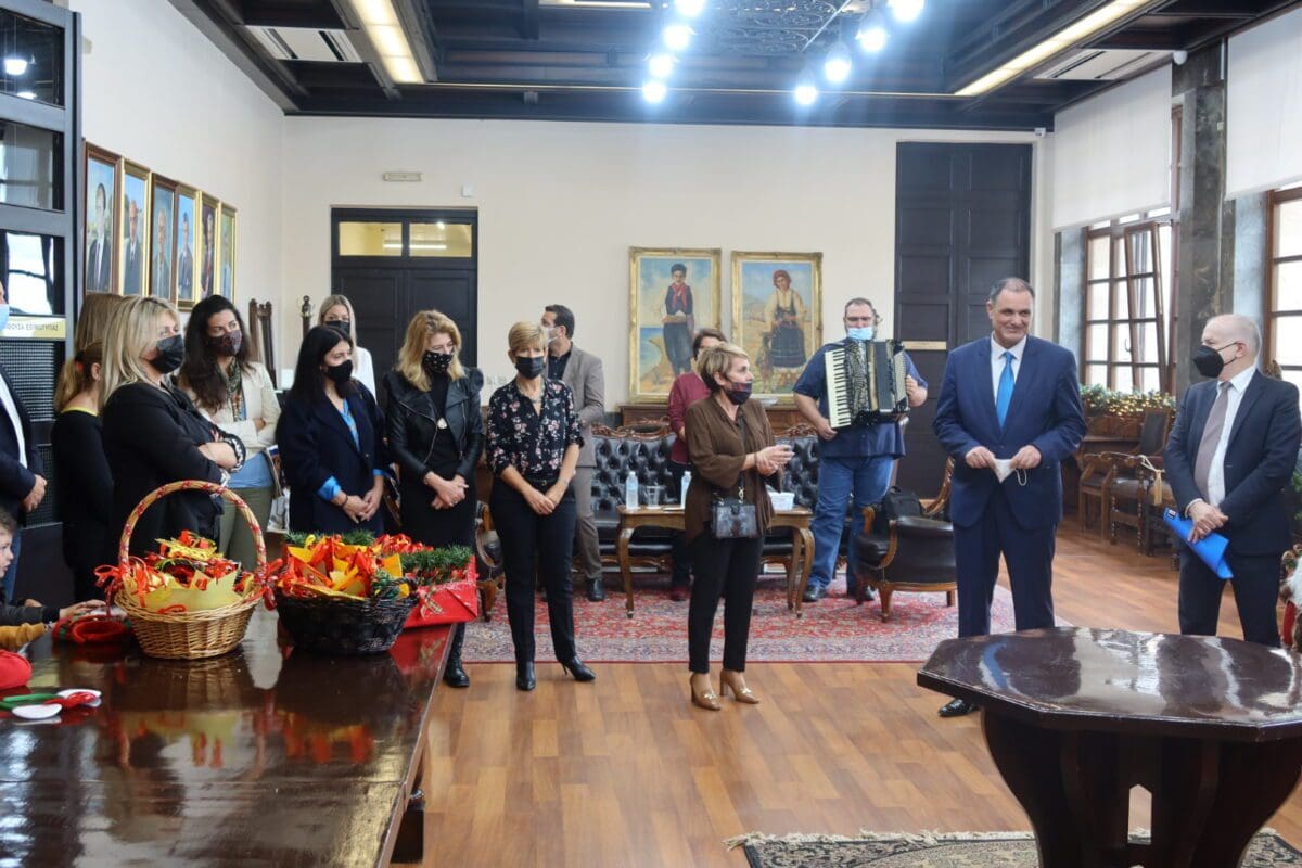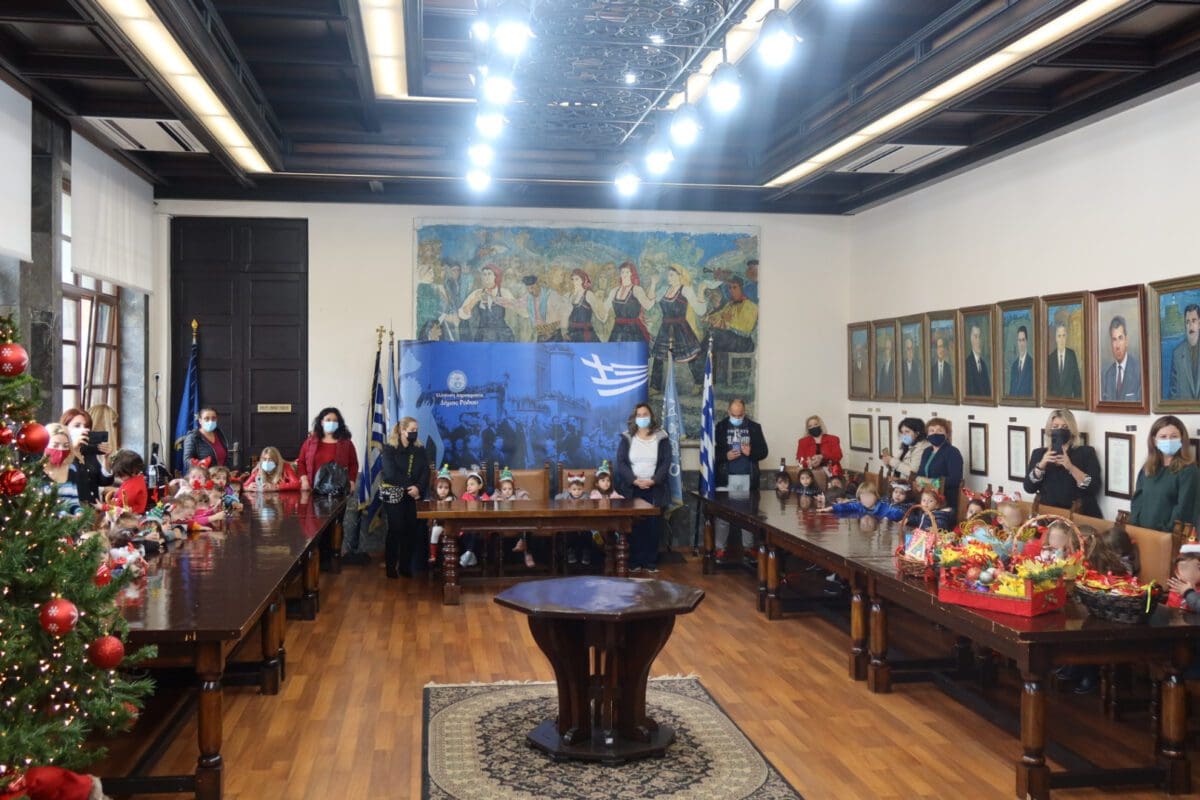 Τους μικρούς επισκέπτες, τις εκπαιδευτικούς και τους εργαζόμενους των προσχολικών κέντρων, υποδέχθηκε ο Δήμαρχος, κύριος Αντώνης Καμπουράκης μαζί με τον Αντιδήμαρχο, κύριο Στράτο Καρίκη και αντάλλαξε μαζί τους ευχές για καλές γιορτές γεμάτες υγεία και αγάπη. Τόνισε ότι τα παιδιά αποτελούν το Αύριο του τόπου μας, ευχόμενος να βρεθούν στο μέλλον στα έδρανα του Δήμου.