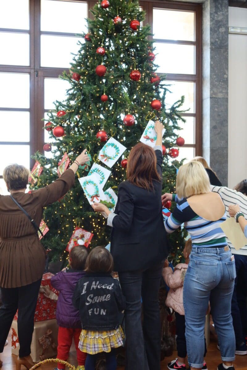 “Πλημμύρισε” από παιδικά χαμόγελα, ενθουσιασμό και χαρά το δημαρχιακό μέγαρο το πρωί της Πέμπτης. Τα παιδιά των παιδικών σταθμών Αγίου Νικολάου, Χρ. Τσιγάντε, και της Ροδιακής Έπαυλης που υπάγονται στη Διεύθυνση Προσχολικής Αγωγής και Δημιουργικής Απασχόλησης του Δήμου Ρόδου, στόλισαν το χριστουγεννιάτικο δέντρο στην αίθουσα Εθιμοτυπίας με τα χειροποίητα, περίτεχνα και πολύχρωμα στολίδια τους, υπό τις μουσικές και τα τραγούδια των Κυριάκου και Νεκτάριου Κωνσταντάκη και Άννας Γιαλλουράκη.