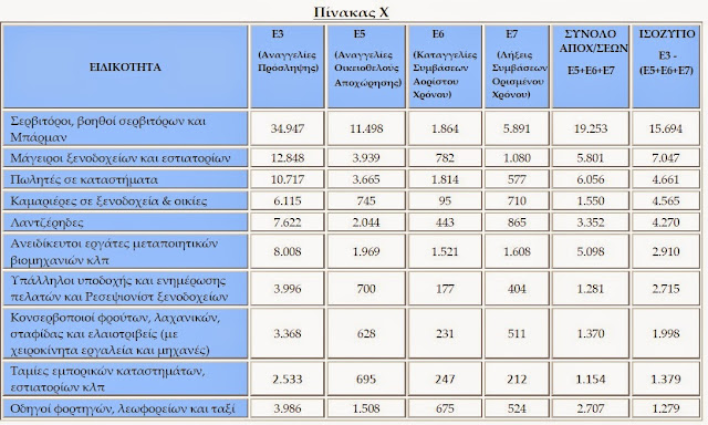 30.000 νέες θέσεις εργασίας, μόνο στα καταλύματα δημιουργήθηκαν τον Ιούνιο του 2014, όπως προκύπτει από τα αποτελέσματα του Πληροφοριακού Συστήματος «ΕΡΓΑΝΗ». Στις δε ειδικότητες μάγειροι και σειρβιτόροι έχουν την “τιμητική” τους. Συνολικά, καταγράφεται αύξηση της μισθωτής απασχόλησης στον ιδιωτικό τομέα, καθώς προκύπτει θετικό ισοζύγιο προσλήψεων – αποχωρήσεων κατά 15.351 θέσεις εργασίας. Συγκεκριμένα, σύμφωνα με τα στοιχεία των ροών μισθωτής απασχόλησης του Ιουνίου 2014, οι αναγγελίες πρόσληψης ανήλθαν σε 170.028, ενώ οι αποχωρήσεις σε 154.677. Από τις 154.677 συνολικά αποχωρήσεις, οι 50.780 προήλθαν από οικειοθελείς αποχωρήσεις και οι 103.897 από καταγγελίες συμβάσεων αορίστου χρόνου ή λήξεις συμβάσεων ορισμένου χρόνου. Από τη σύγκριση των στοιχείων των δύο μηνών, Ιούνιος 2014 και Ιούνιος 2013, προκύπτει υψηλότερη θετική επίδοση για τον Ιούνιο 2014 (θετικό ισοζύγιο 15.351 νέων θέσεων) έναντι θετικού ισοζυγίου (14.341) τον Ιούνιο του 2013.