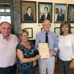 Επίσης, παρουσία του αντιδημάρχου κ. Σάββα Διακοσταματίου τιμήθηκε το ζεύγος κ. Federico και κα Margit De Seras από την Ισπανία, που έρχονται στη Ρόδο συνολικά επί 33 χρόνια, μένουν στο ξενοδοχείο Afandou Bay και ήλθαν στο Δημαρχείο συνοδευόμενοι από τον κ. Παναγιώτη Διάκου, καθώς και ο κ. Tom Moore και η σύζυγος του κα Jan Moore από την Ιρλανδία, φανατικοί φίλοι του νησιού, το έχουν επισκεφθεί πάνω από 40 φορές, διαμένουν σε διαμερίσματα στην Ιαλυσό και συνοδεύονταν στην εκδήλωση από τον κ. Σάββα Πετριδένα.