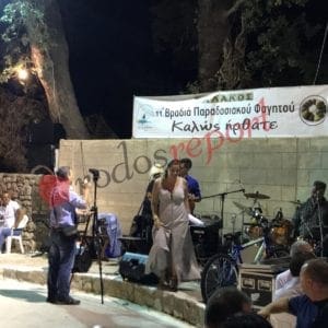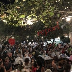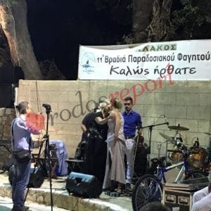 Εξαιρετικό το θέαμα από τα χορευτικά τού πολιτιστικού συλλόγου Λάρδου και του συλλόγου Ρουμελιωτών Ρόδου, προτού το κέφι αρχίσει για τα καλά με παραδοσιακή, νησιώτικη και λαϊκή μουσική.