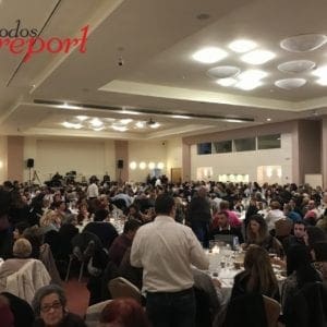 Η ανταπόκριση του κόσμου για ακόμα μια φορά στο έργο που επιτελεί ο τηλεοπτικός σταθμός ΘΑΡΡΙ αλλά και στην προσφορά του πατρός Νεκταρίου Πόκκια ήταν πολύ μεγάλη. Η αίθουσα γέμισε με περισσότερα από 500 άτομα που βρέθηκαν εκεί για να δείξουν την αγάπη τους στο ΘΑΡΡΙ σε μια εκδήλωση με φαγητό, μουσική, χορό και πλούσια λαχειαγορά με περισσότερα από 450 δώρα που κέρδιζε όποιος έπαιρνε λαχνό.