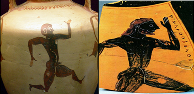 Μπορεῖ κανεῖς μὲ μία πρόχειρη διαδικτυακὴ ἀναζήτηση εἰκόνων νὰ βρῆ πλῆθος φωτογραφιῶν ἀγγείων, ὅπου ἀναπαρίστανται δρομεῖς, ὁπλίτες δρομεῖς, ἀλλὰ καὶ ἡρωϊκὰ καὶ μυθολογικὰ πρόσωπα, νὰ τρέχουν κατὰ τὸν προπεριγραφέντα τρόπο.