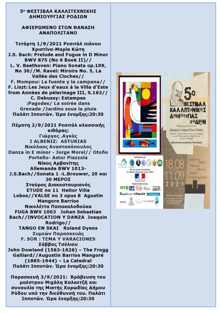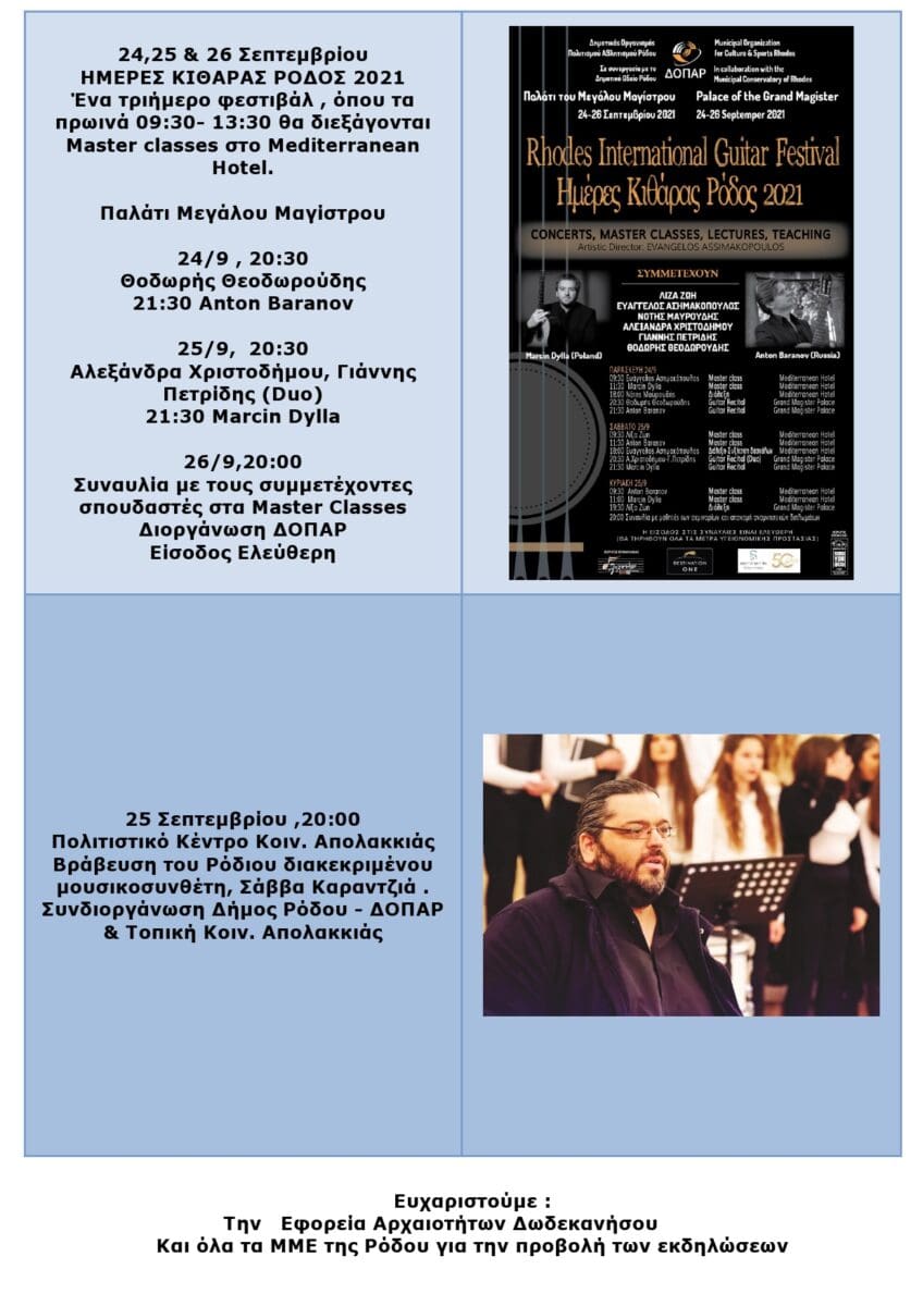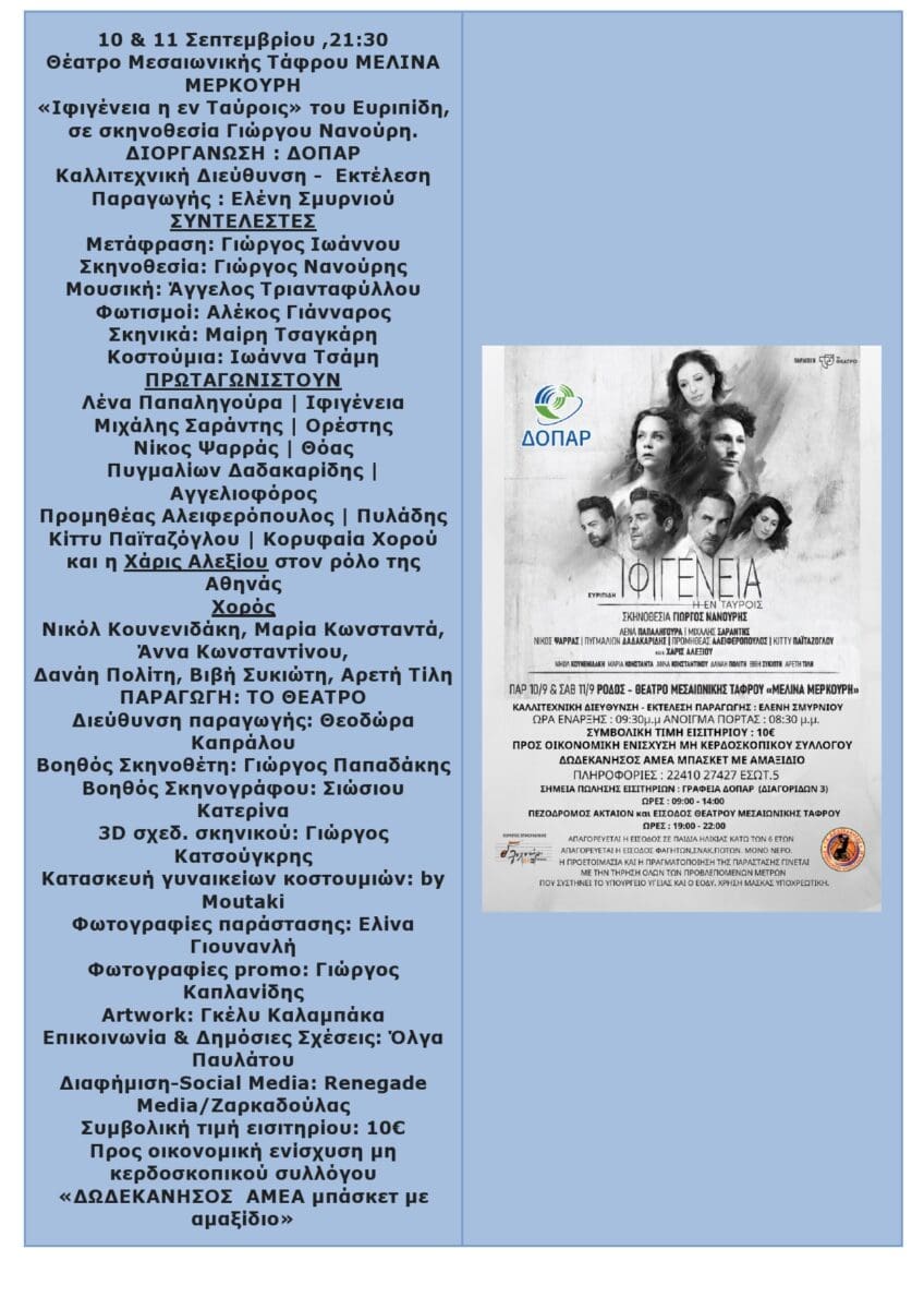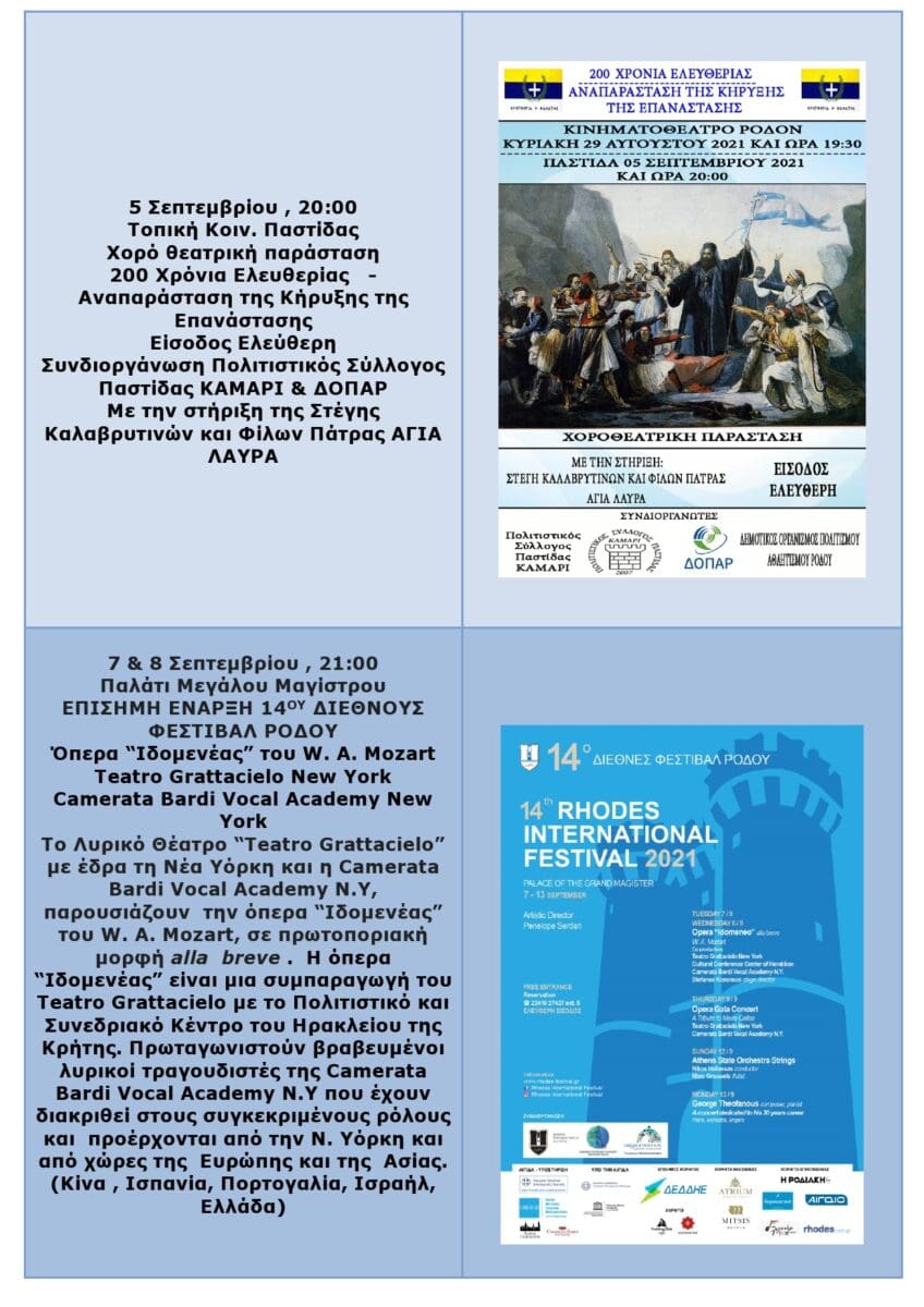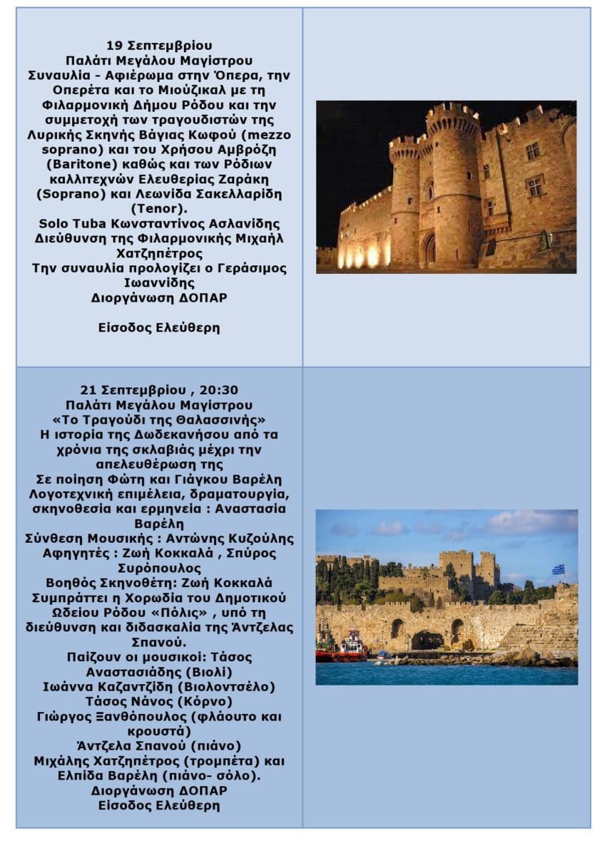 To πρόγραμμα πολιτιστικών εκδηλώσεων Σεπτεμβρίου του Δήμου Ρόδου