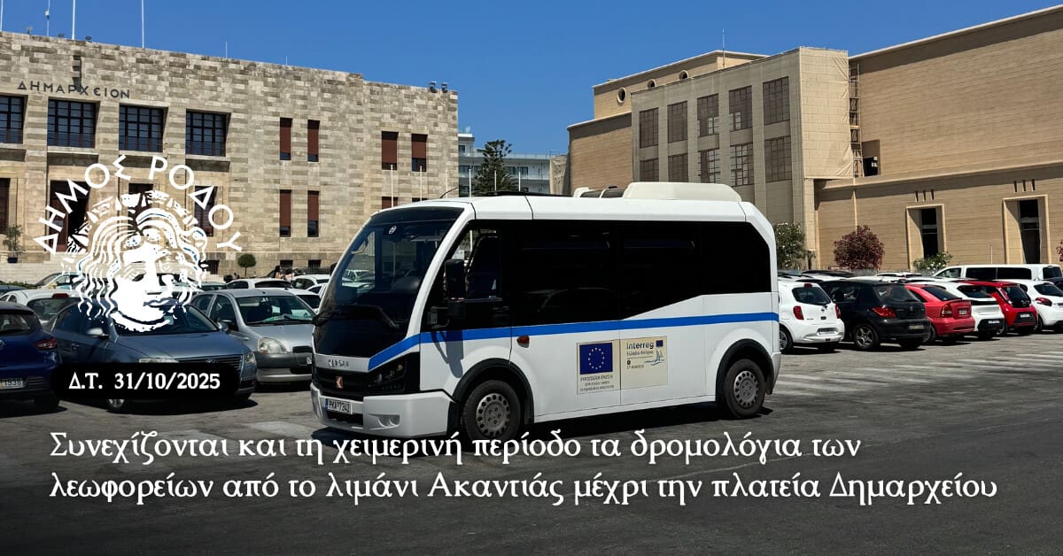 Από τη Διεύθυνση Συγκοινωνίας Δήμου Ρόδου ανακοινώνεται ότι τα δρομολόγια των λεωφορείων από το λιμάνι Ακαντιάς μέχρι