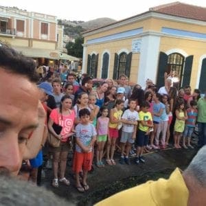 Η χελώνα μπορεί να κολυμπήσει παρά τον τραυματισμό της, ζυγίζει περισσότερα από 40 κιλά και μικροί και μεγάλοι βρέθηκαν στο λιμάνι της Σύμης για να τη δουν απο κοντά, καθώς δεν έχουν συχνά τέτοιους επισκέπτες.