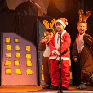 Το πλούσιο πρόγραμμα ξεκίνησε στις 17:00 με πρωταγωνιστές τους μικρούς μαθητές του Νηπιαγωγείου και την παράσταση «Ο Αϊ- Βασίλης στη Φυλακή με τους 83 μικρούς αρουραίους». Η απολαυστική παράσταση ήταν βασισμένη στο παραμύθι του Ευγένιου Τριβιζά. Οι θεατές καταχειροκρότησαν τους μικρούς πρωταγωνιστές με μεγάλο ενθουσιασμό.